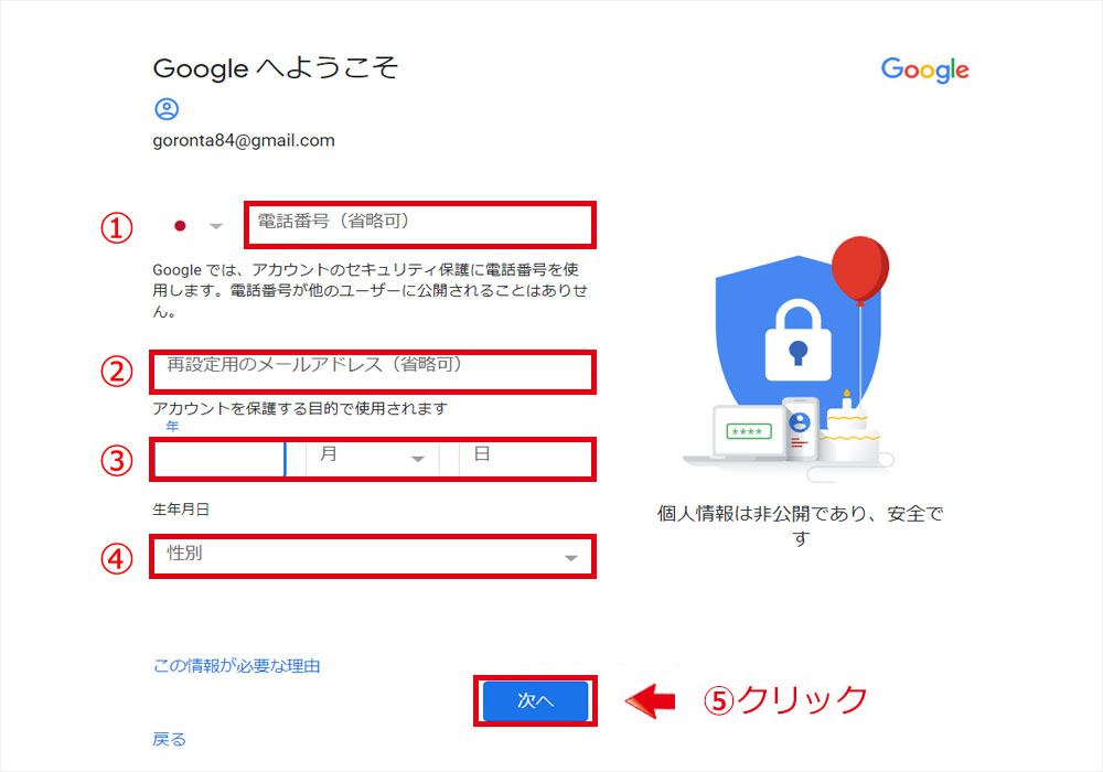 - 「次へ」をクリックするとGメールが作成されます。